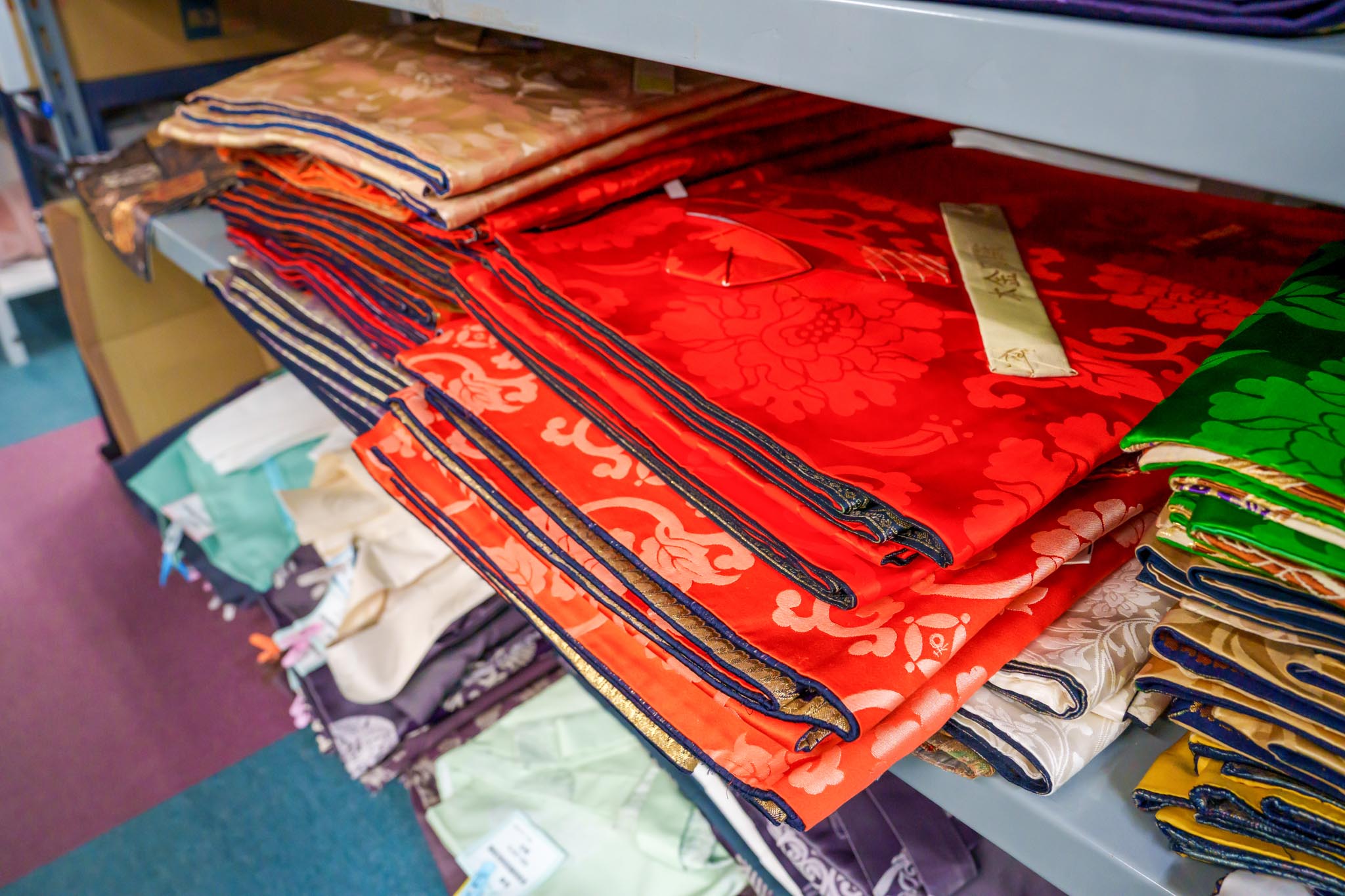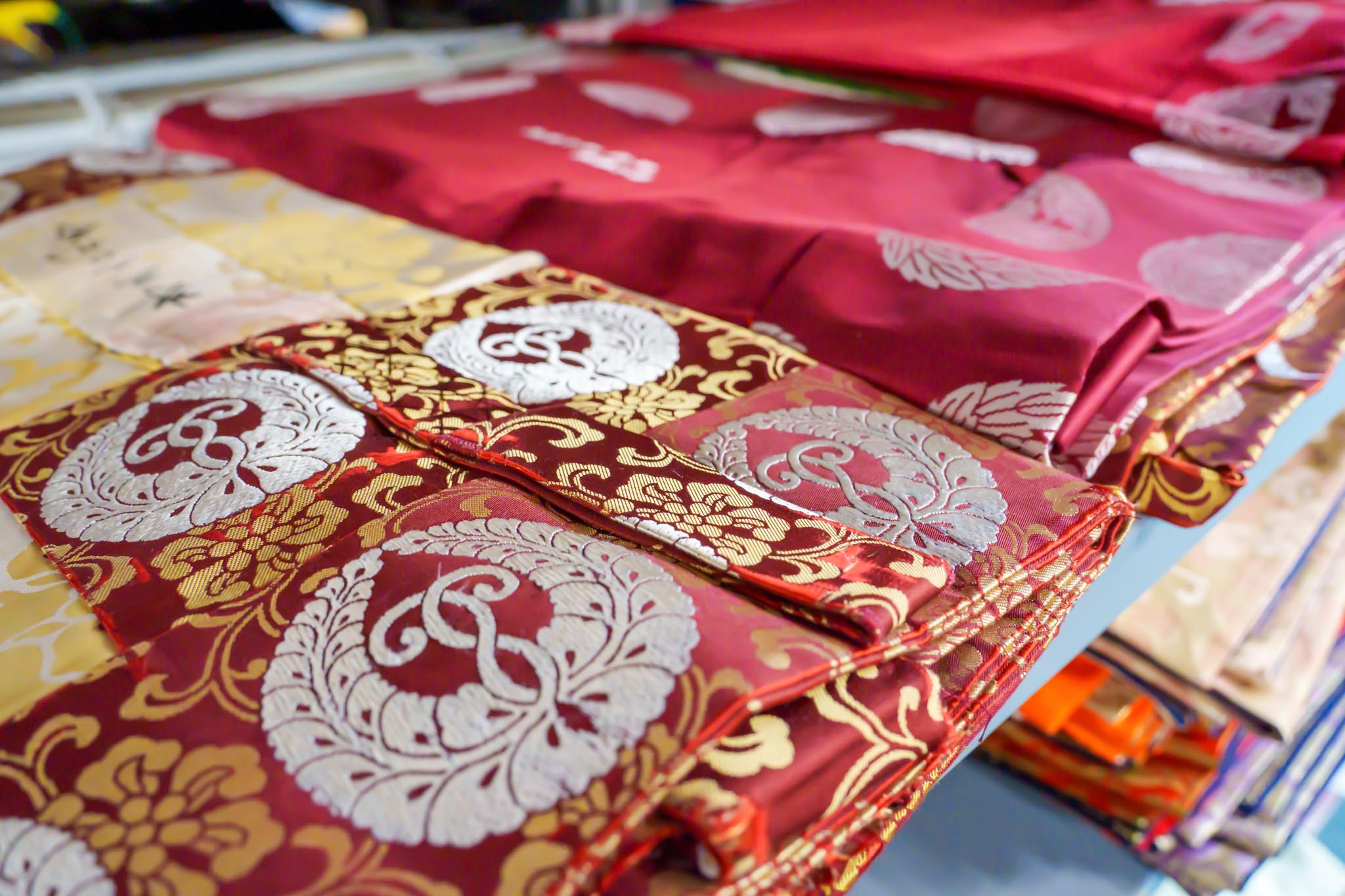 和光舎では、京都の伝統技法「京洗い」による法衣・袈裟・装束の丸洗い、染み抜き、修繕のほか、